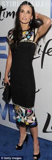 Rochia neagra cu modele geometrice a evidentiat talia de viespe a vedetei si bratele numai oase si muschi. Nutritionistul dr. Majid Ali a precizat ca este posibil ca Demi Moore sa stea prea mult in sala de sport si sa manance prea putin.