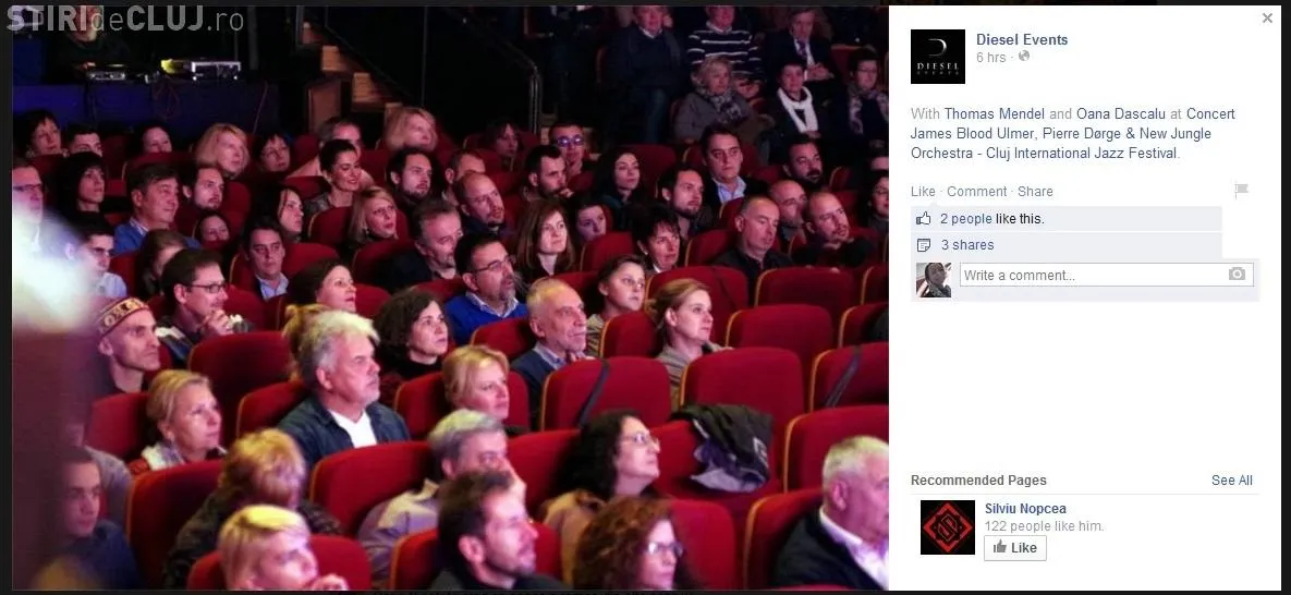 Reprezentanții Diesel Events, cei care au organizat CLUJ INTERNATIONAL JAZZ FESTIVAL, au prelucrat în Photoshop o fotografie pentru a părea că sala e plină la concert.