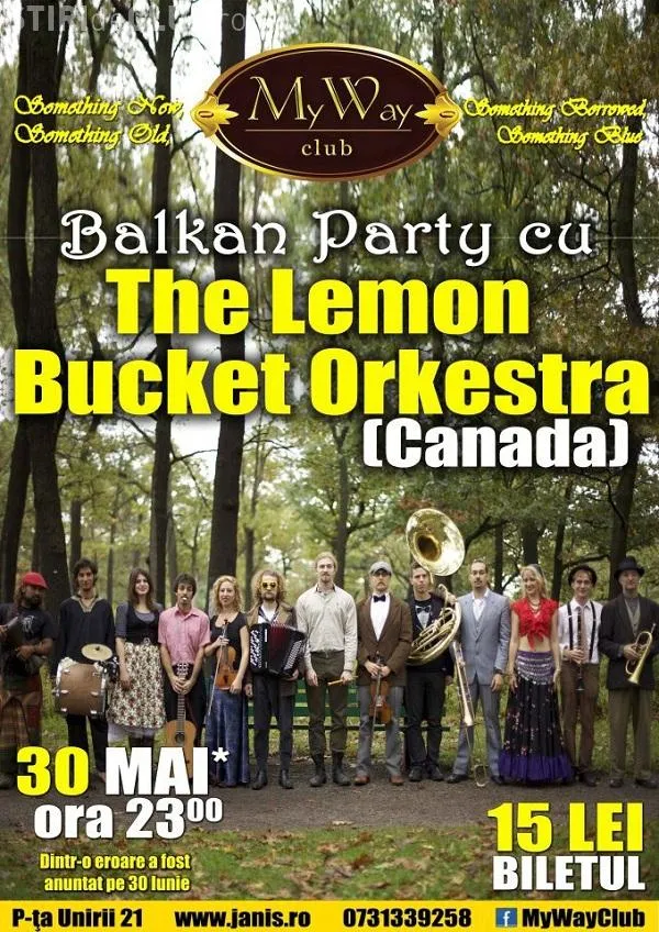 Maine seara, 30 mai, The Lemon Bucket Orckestra va sustine un super concert in My Way. Esti asteptat sa petreci alaturi de o trupa ale carei influente muzicale se trag din mai multe colturi ale lumii.