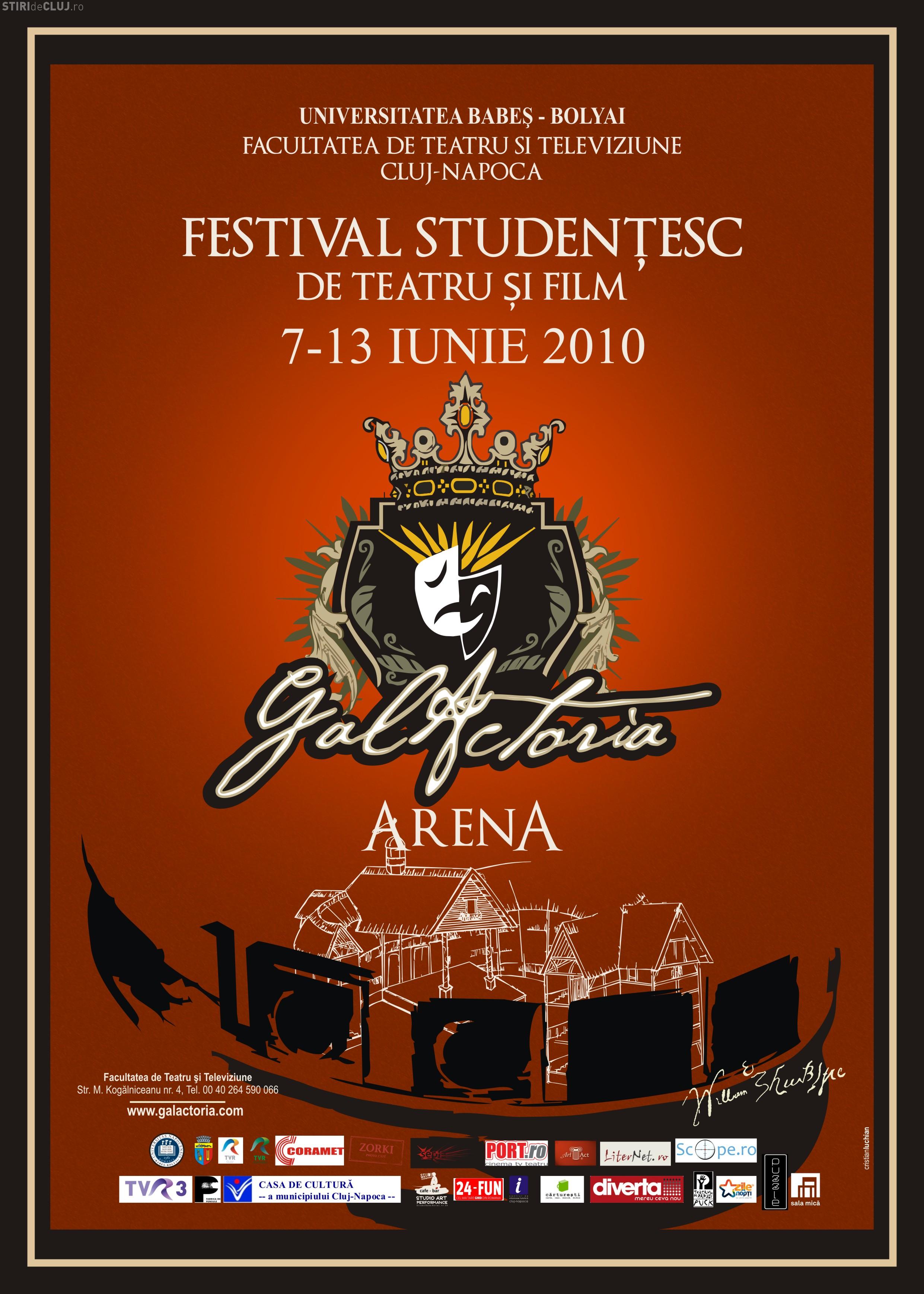 Imediat ce se incheie TIFF, de luni, la Cluj incepe un? alt festival legat de film. Galactoria este un festival de teatru si film, in care vor putea fi urmarite productii ale studentilor clujeni la actorie.