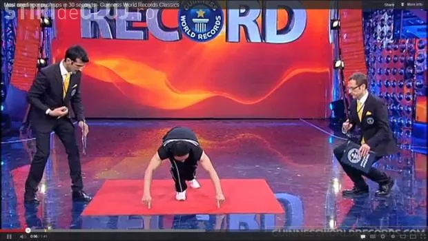 Până acum tot el deținea recordul mondial, cu 41 de flotări, într-un singur deget, realizate în 30 de secunde.