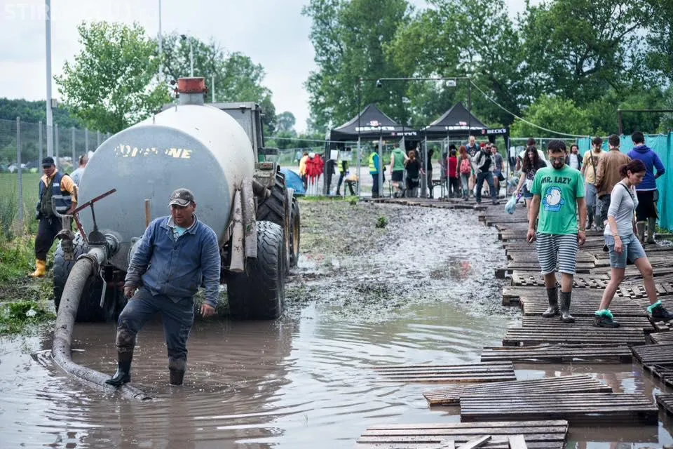 ”Work in Progress. Vremea tine cu noi. In acest moment prioritatile noastre sunt consolidarea cailor de acces cu pietris, curatarea si vidanjarea curtii interioare si consolidarea intrarii in camping. We are the people!”, transmit organizatorii evenimentului.