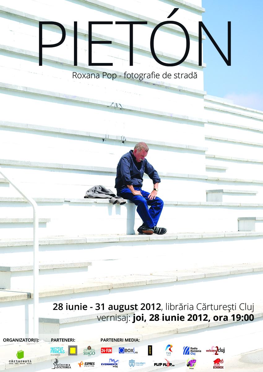 ”PIETÓN” la Cărtureşti - Roxana Pop a expus în Iulius Mall, în librăria Cărtureşti, imagini sub genericul "PIETÓN". Expoziţia cuprinde "fotografii făcute în călătoriile prin Belgia, Olanda şi Spania. În timpul lor am avut ocazia de a explora o altfel de stradă: poate mai occidentală, cu siguranţă mai diversă. Oamenii sunt tot oameni, dar mediul este altul şi el se reflectă pe feţele, în posturile oamenilor. Simt că în fotografiile astea unde e mai important decât când", după cum a afirmat Roxana Pop, ale cărei imagini vor sta pe simeze până pe 31 august 2012.