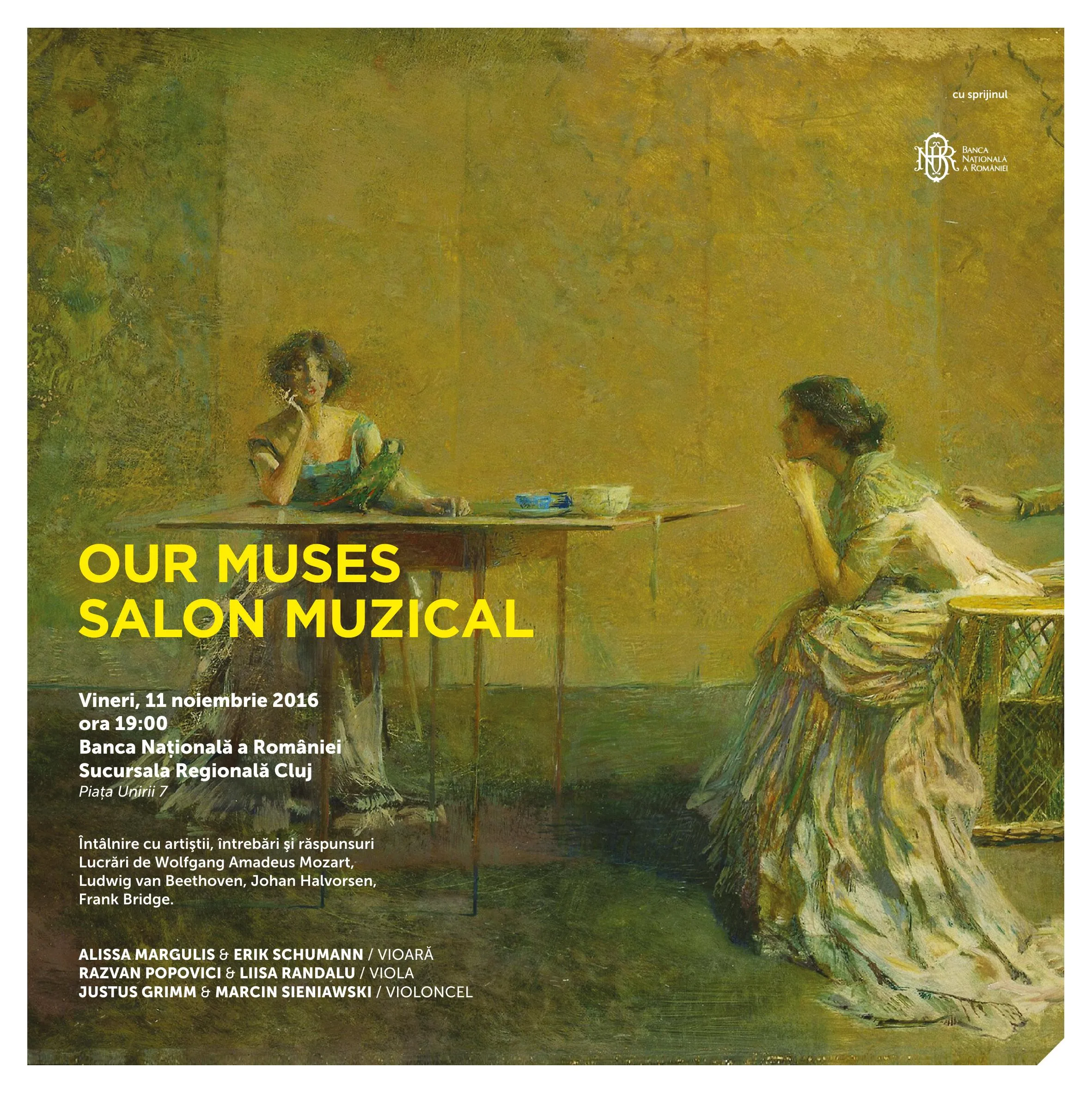 Acest dialogul cu publicul va continua și în Cluj-Napoca în cadrul unui Salon Muzical, ce va avea loc pe 11 noiembrie la Banca Națională a României. Salonul va prilejui un dialog cu artiștii Erik Schumann și Alissa Margulis (vioară), Răzvan Popovici și Liisa Randalu (violă) și Marcin Sieniawski (violoncel). Programul muzical va cuprinde lucrări de Wolfgang Amadeus Mozart, Ludwig van Beethoven, Johan Halvorsen și Frank Bridge.