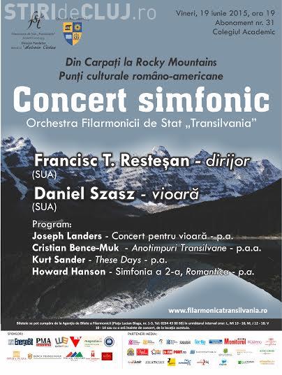 Spectacolul va avea loc vineri, 19 iunie, la Colegiul Academic, ocazie cu care dirijorul Francisc T. Resteșan (SUA) și solistul Daniel Szasz (SUA) revin la Cluj –Napoca pentru un concert ce include compoziții în primă audiție și primă audiție absolută.