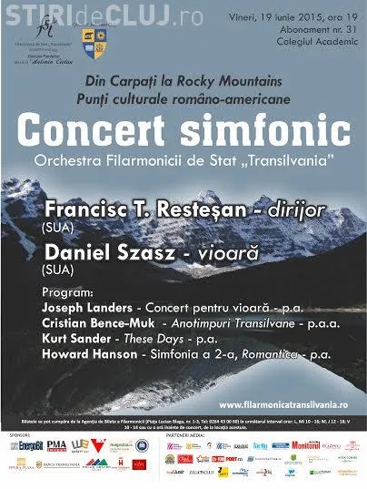 Filarmonica Transilvania organizează concertul ”Din Carpaţi la Rocky Mountains”
