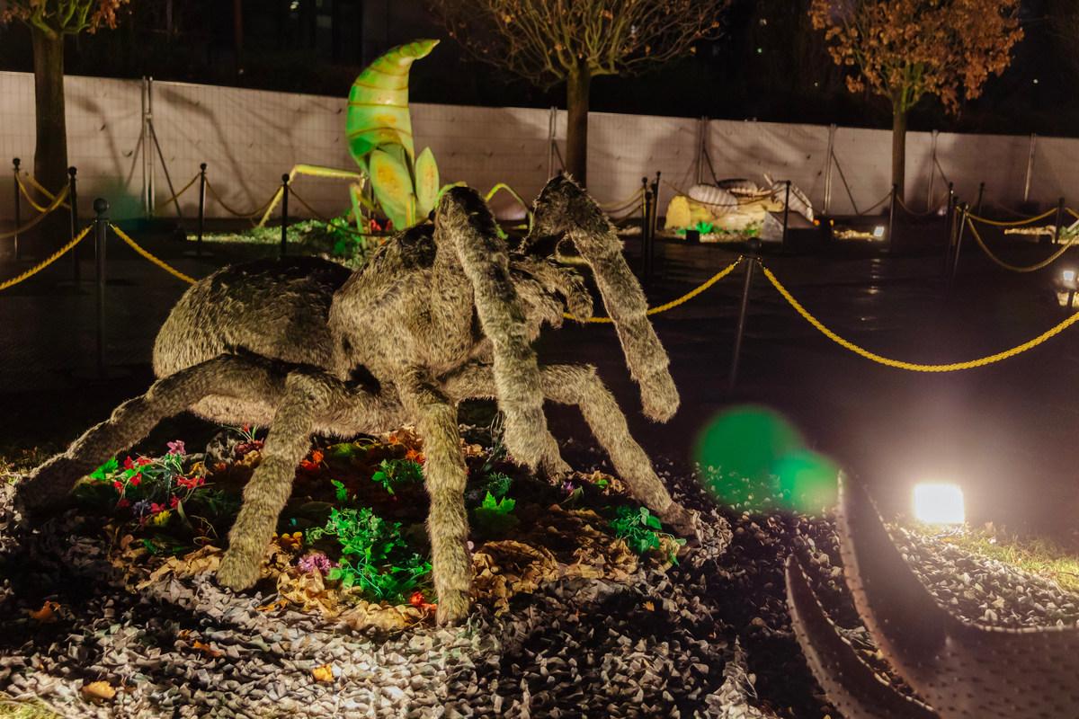 Un fluture care în mod normal măsoară doar 7 cm poate fi admirat acum la o înălțime impresionantă de peste 3 metri. O molie de 24 cm ajunge la 3,5 metri, iar o tarantulă, care în realitate are în jur de 13 cm, este expusă la 3 metri.