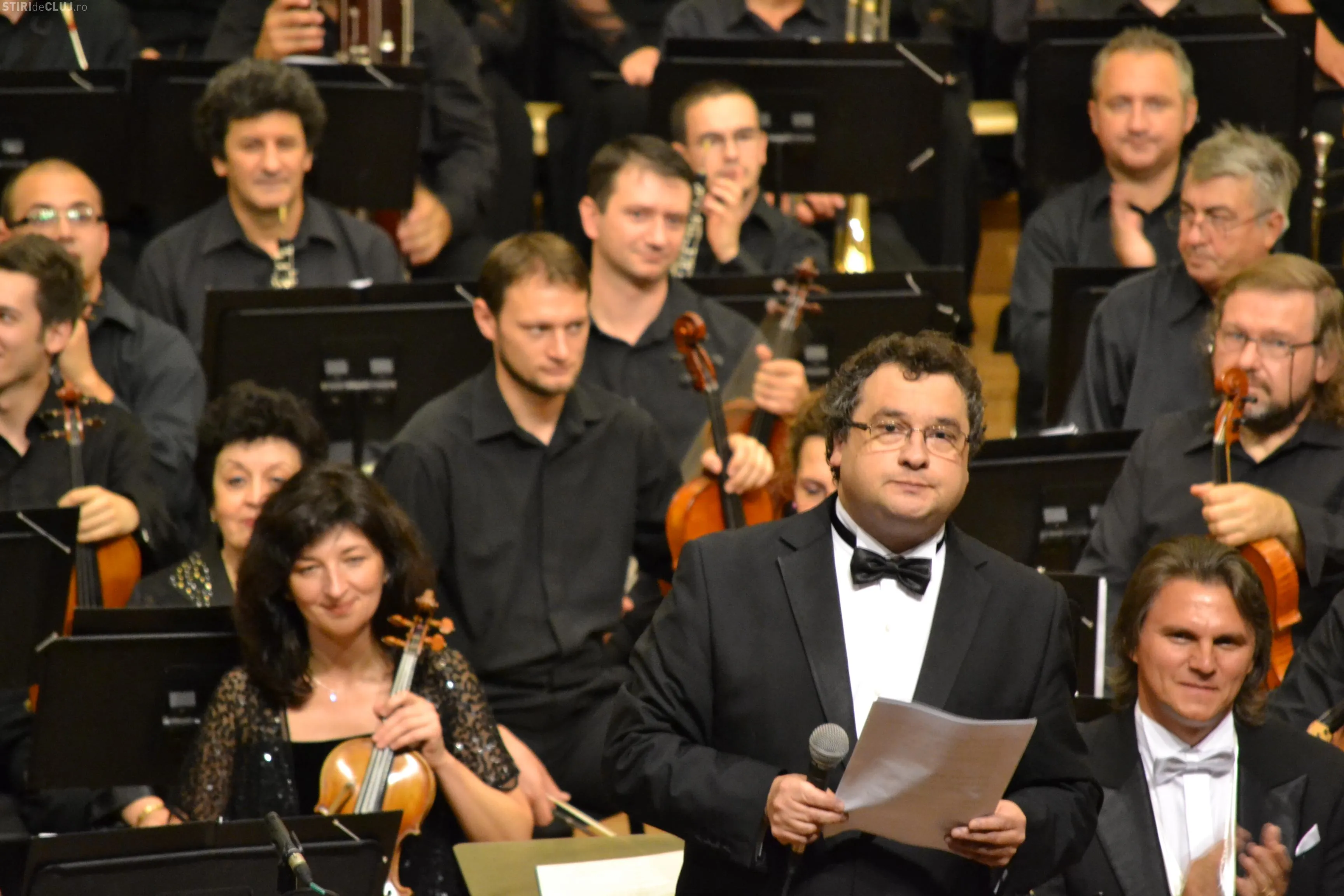 Evenimentul de aseară de la Casa Univesitarilor a început cu Concertul de vioară al lui Antonin Dvoak, ce l-a avut ca solist pe indragitul Liviu Prunaru. Acesta a fost aplaudat la final minute in sir, oferind un bonus publicului. A cantat o melodie din repertoriul popular alaturi de un membru al orchestrei.