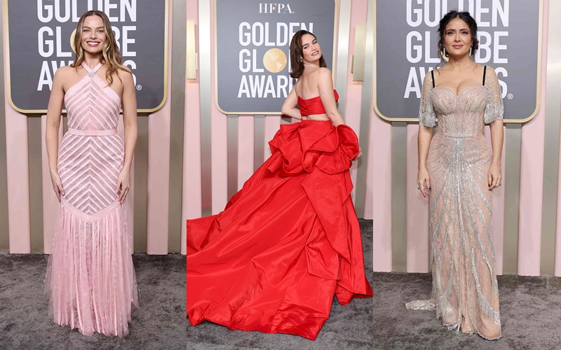 Ana de Armas a venit la Globurile de Aur într-o rochie neagră cu argintiu, cu spatele gol, creată de Louis Vuitton. Salma Hayek, în vârstă de 56 de ani, și-a pus în valoare decolteul generos într-o rochie nude și un corset argintiu, cu detalii negre. Ținuta poartă semnătura casei de modă Gucci.