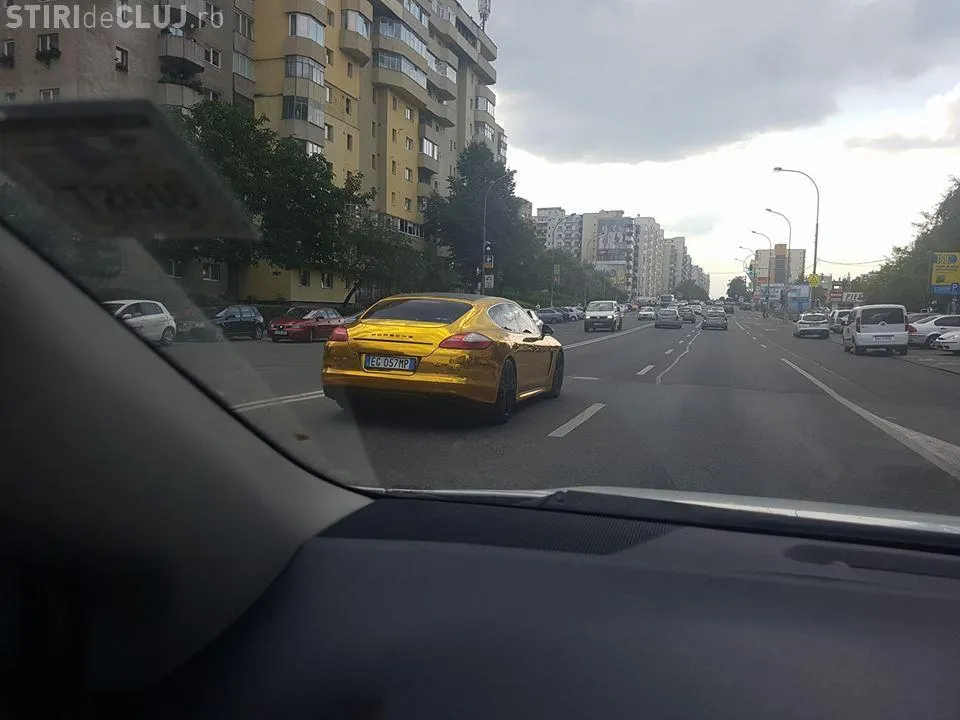 Este vorba despre un Porsche special, ce strălucește ca aurul și care a stârnit amuzamentul clujenilor.