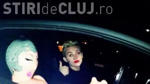 Actrița apare într-o fotografie alături de o păpuşă gonflabilă. Miley Cyrus conduce mașina, iar păpușa este pe scaunul din dreapta şi poartă centura de siguranţă.