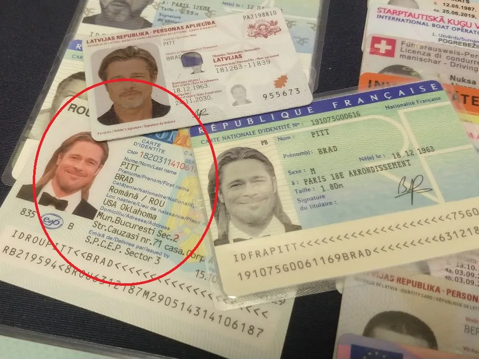 Un cetățean leton, considerat de autoritățile din mai multe țări drept cel mai talentat falsificator de documente din Europa, a fost arestat săptămâna aceasta în Spania. Era dat în urmărire de autoritățile din țara natală, după ce a reușit să evadeze în urmă cu un an, reușind să ajungă în Spania cu o identitate falsă, unde și-a continuat activitatea. Polițiștii spanioli i-au găsit în casă inclusiv o carte de identitate românească a actorului Brad Pitt, o mostră foarte bine realizată cu care letonul își convingea clienții.