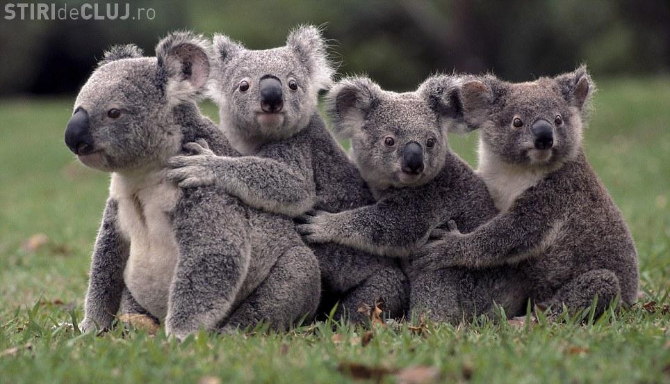 Patru adorabili ursuleti Koala au fost fotografiati imbratisati ca o mare si fericita familie in parcul Lone Pine din Queensland, Australia.