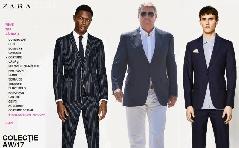 Klaus Iohannis a purtat un sacou navy și pantaloni albi, ținuta fiind completată de o cămașă albă, pantofi maro și o pereche de ochelari de tip Aviator.