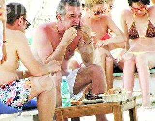 Gigi Becali i-a socat pe turistii aflati pe o plaja privata din Mamaia Nord, cand s-a pus pe mancat pastrama de oaie direct de pe sezlong.