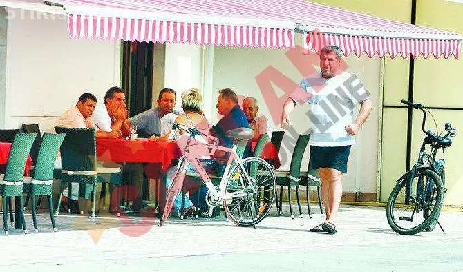 Gigi si Victor si-au parcat regulamentar bicicletele si au stat la o poveste cu prietenii. Primul a plecat Victor Becali care si-a luat la revedere de la meseni si s-a dus spre casa.