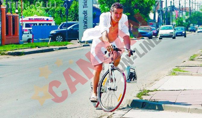 Gigi Becali a plecat si el, pentru ca tocmai fusese la cumparaturi. Patronul Stelei a pedalat cu sacosa pe ghidon si cu camasa descheiata.