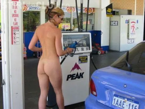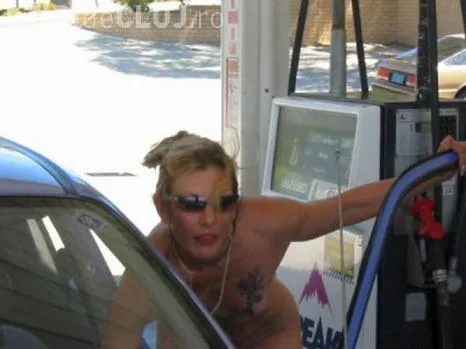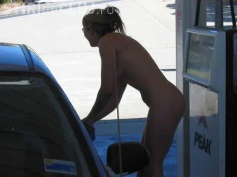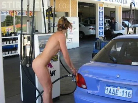 Goală și sexy, o tânără a făcut plinul la o benzinărie în pielea goală - FOTO
