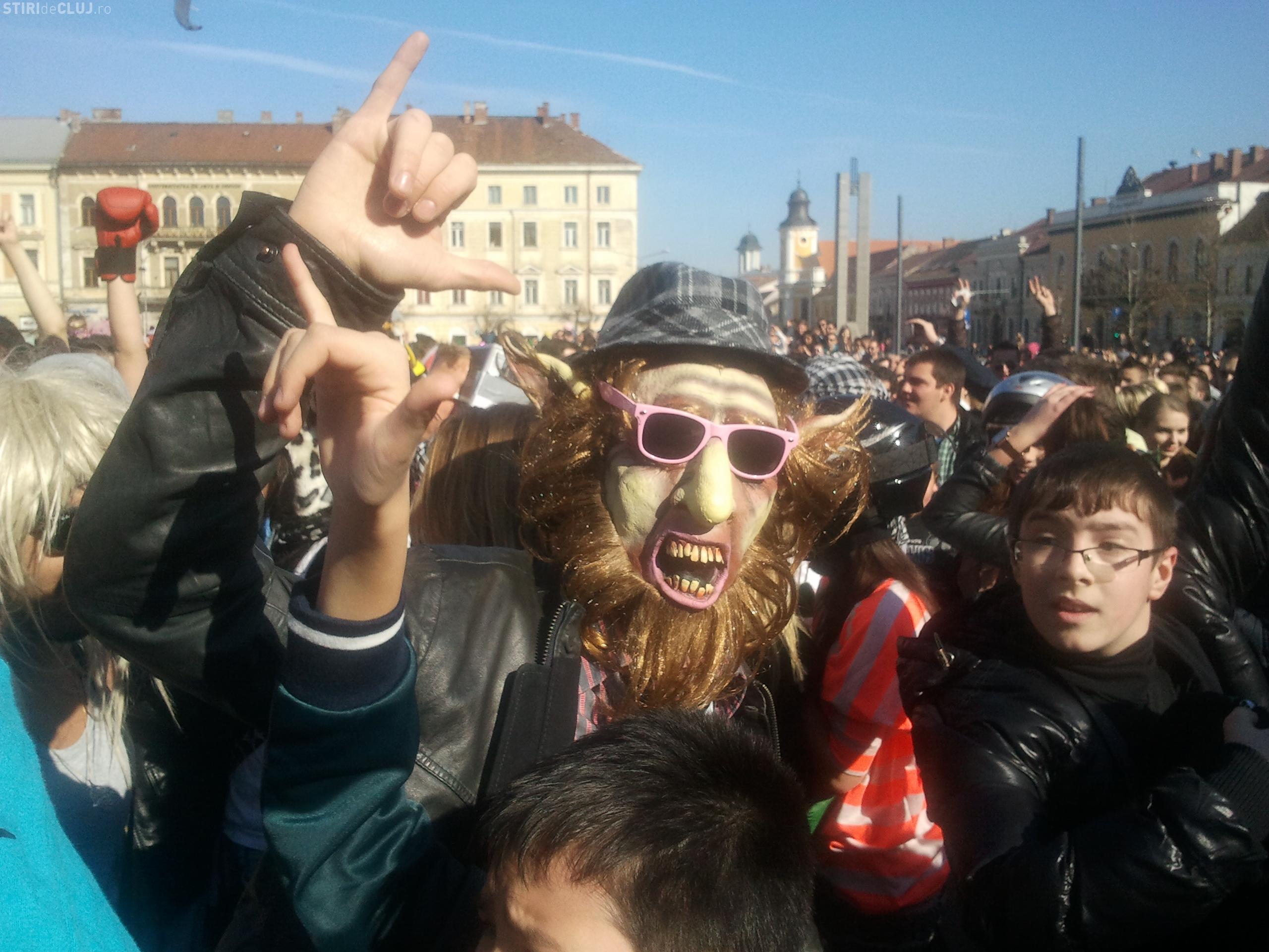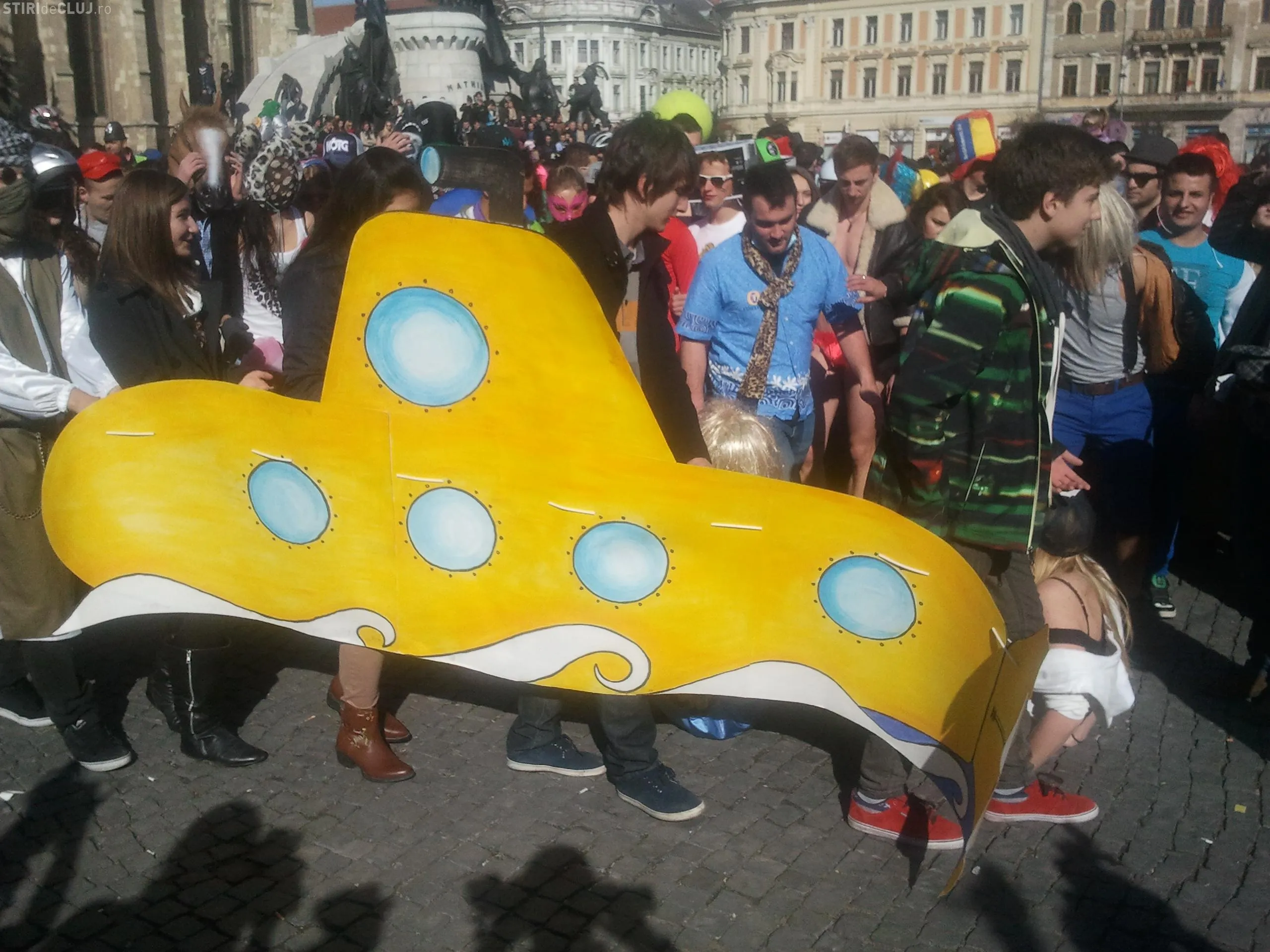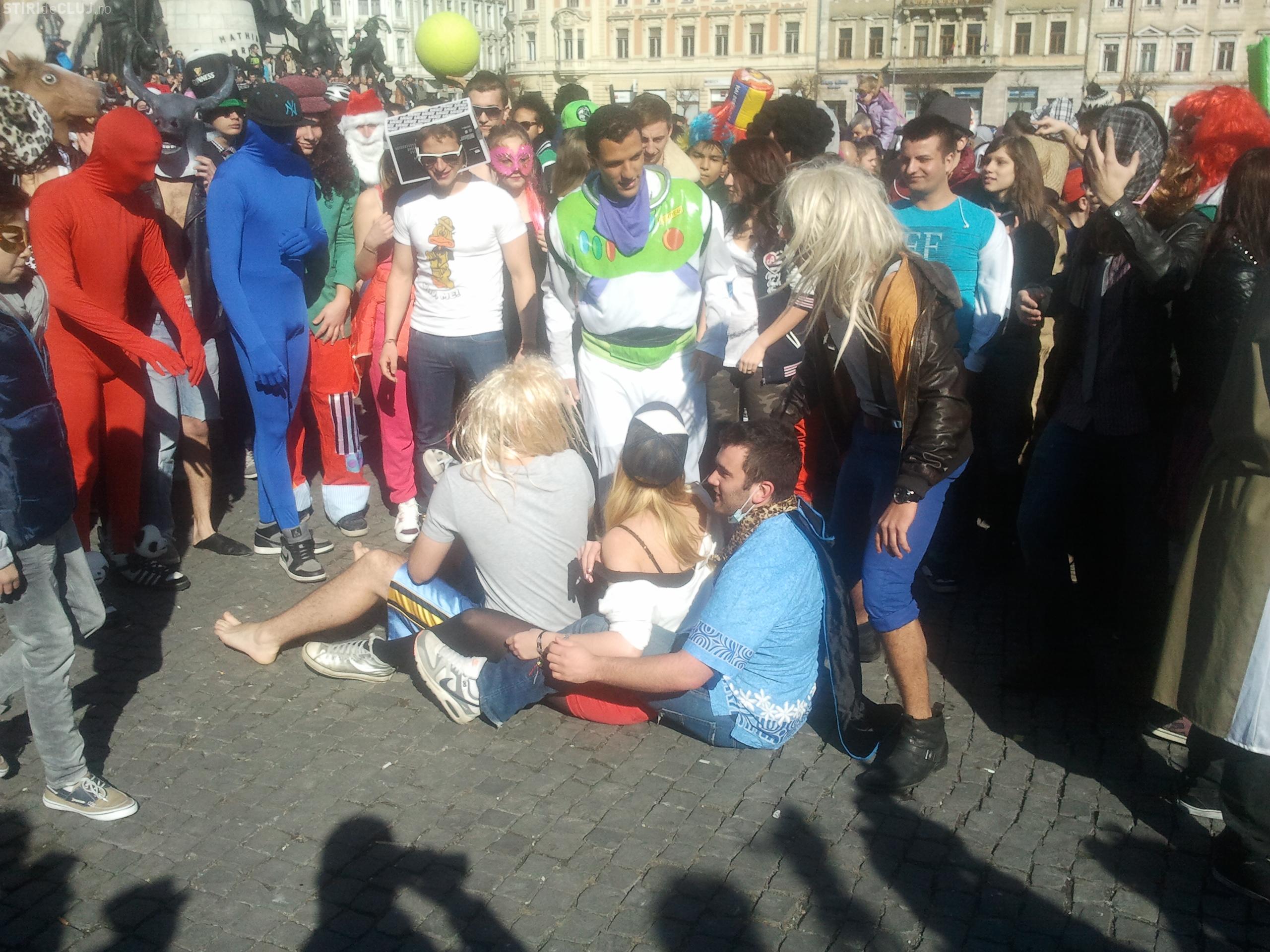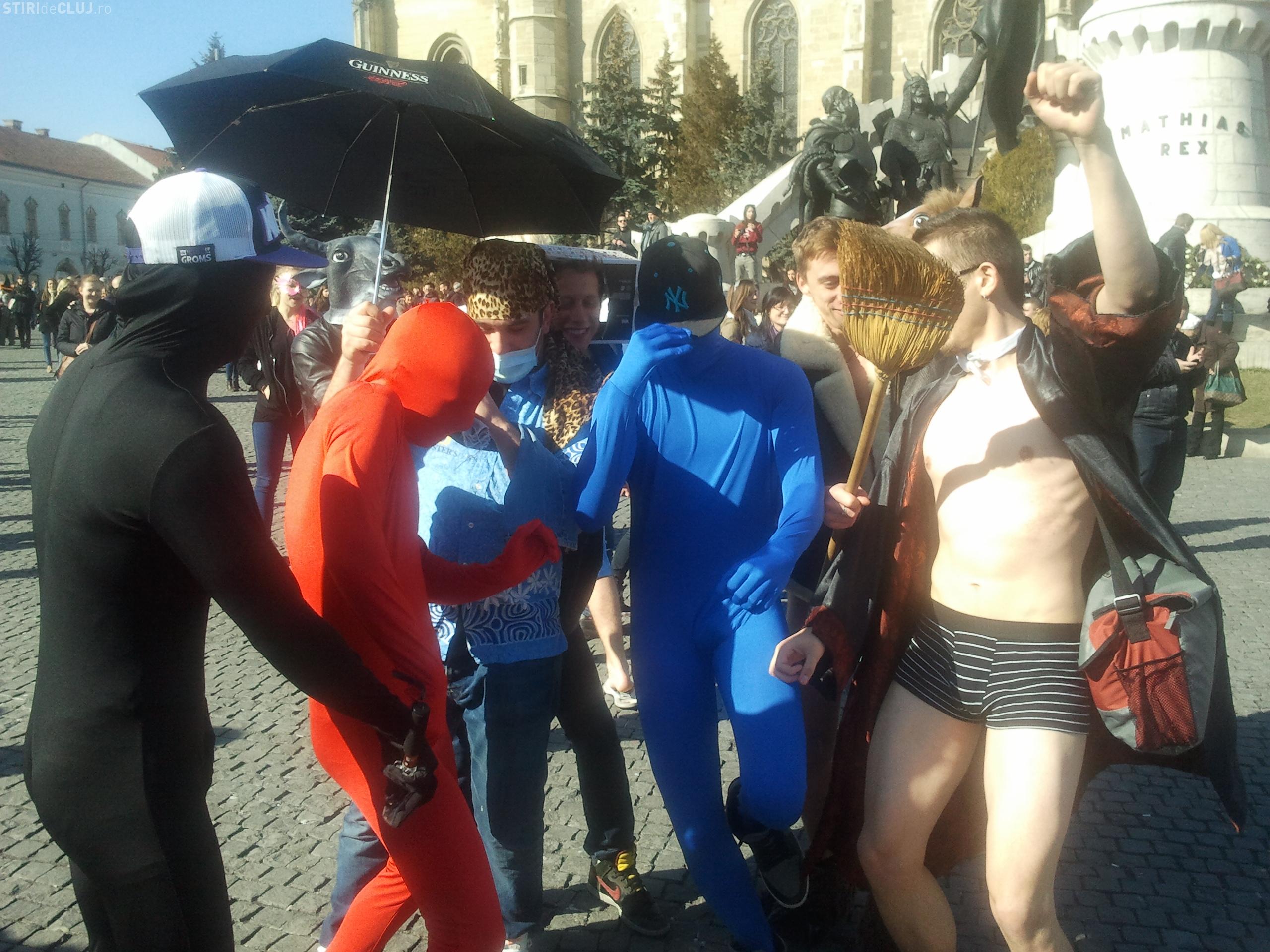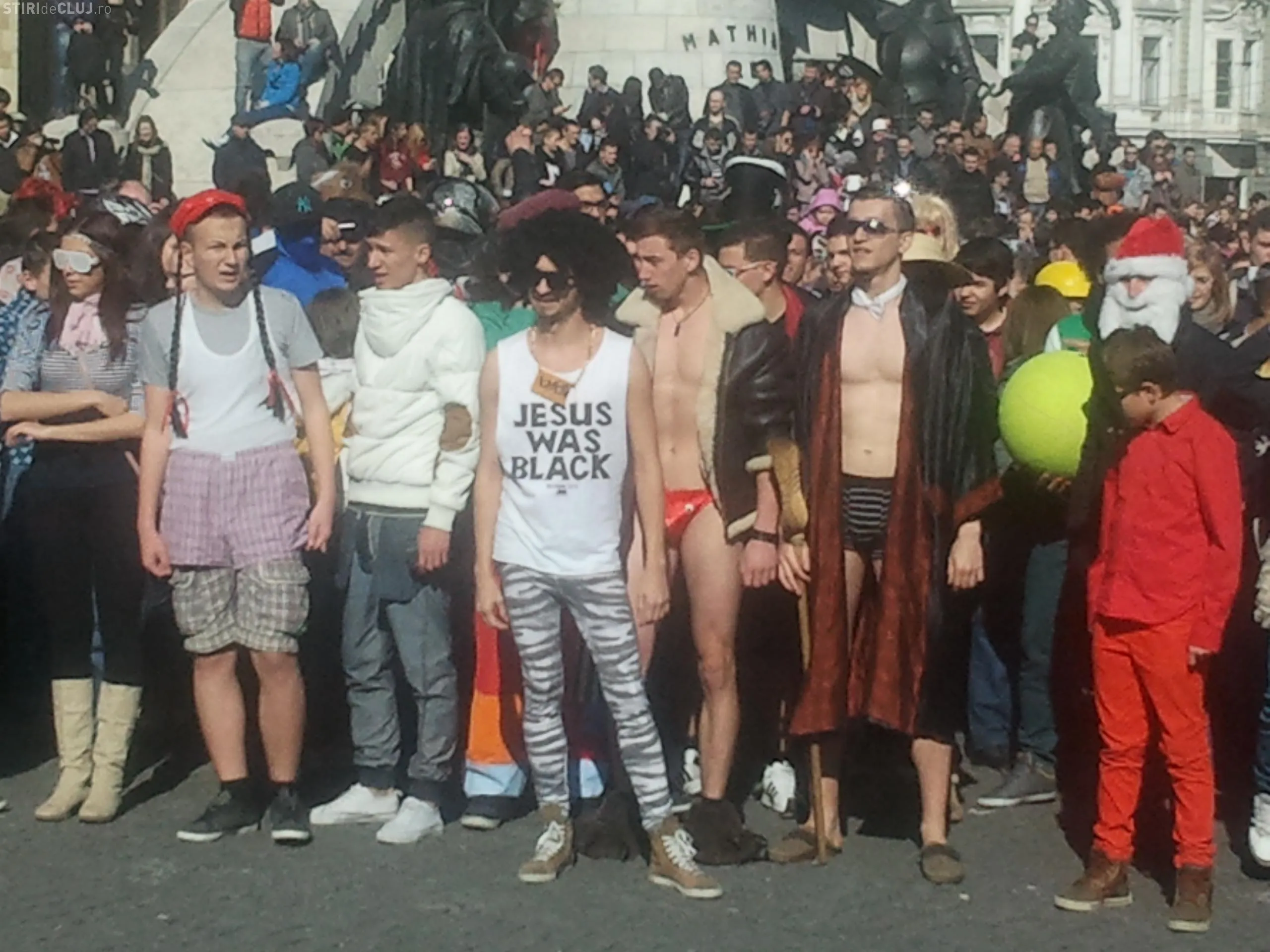 Harlem Shake în Piaţa Unirii din Cluj-Napoca. Peste 3.000 de tineri au dansat, duminică, 3 martie, pe ritmurile celebrei piese Harlem Shake. Costumaţia acestora a fost trăznită.