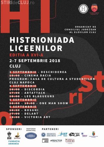 ”Histrioniada Liceenilor”, Festivalul national de teatru organizat exclusiv de liceeni pentru liceeni, a avut, în 3 septembrie 2018, deschiderea oficială, cu piesa companiei de teatru independent Reactor, numită „Planeta Manipulare S01”, care a fost pusă în scenă la cinematograful Dacia din Mănăștur. Sala fost plină de liceenii iubitori de teatru, veniți din toate colțurile României. La cea de-a XVI-a ediție a festivalului de la Cluj Napoca participă șase trupe din: București, Alba Iulia, Focșani, Galați, Constanța, Timișoara, Cluj Napoca, Suceava și Sibiu. Precizăm că una dintre trupe are componenți din mai multe orașe.