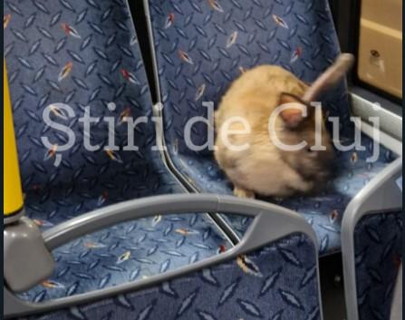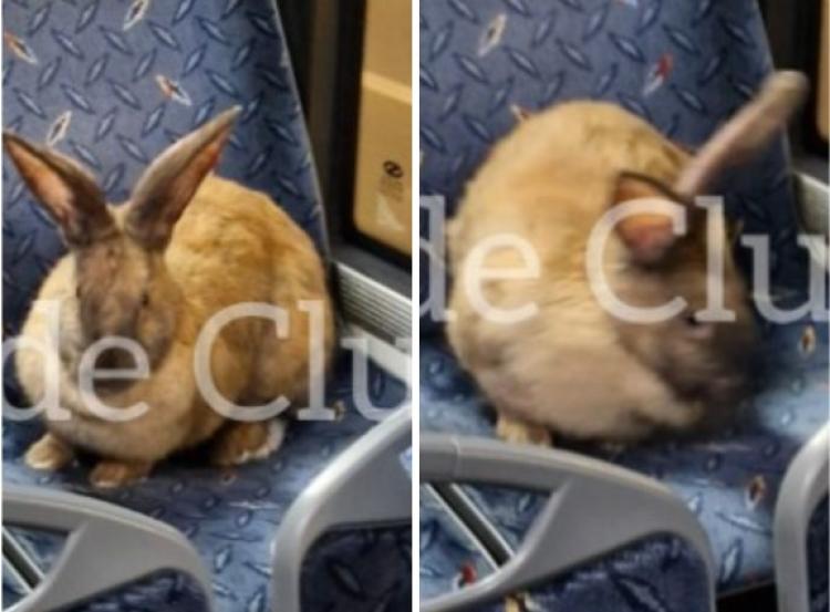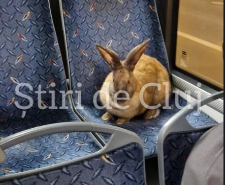 Un iepure simpatic a fost zărit duminică seară într-un autobuz din Cluj-Napoca, „blănosul” stând cuminte pe un scaun, ca un adevărat pasager.