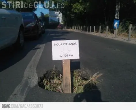 "Noua Zeelandă, 12.720 de km" e pancarta absolut genială pe care un român a fixat-o într-o groapă de toată frumusețea. O scurtatură ironică, mai ceva ca-n desenele cu Bugs Bunny. Potrivit comentariilor, poza ar fi realizată în zona Pipera din Capitală, informează Pro TV.