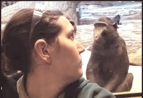 O femeie din Rusia a avut parte de o surpriză uriașă la grădina zoologică, în momentul în care și-a făcut apariția o maimuță extrem de jovială și i-a stricat poza.