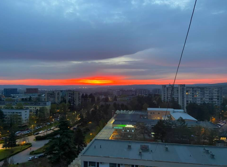Imaginea zilei vine astăzi din cartierul Someșeni, acolo unde cerul a oferit un adevărat spectacol la primele ore ale dimineții. Răsăritul a pictat orizontul în nuanțe aprinse de roșu, portocaliu și violet, creând o imagine de o frumusețe rară care a fost imortalizată de un locuitor pasionat de fotografie.