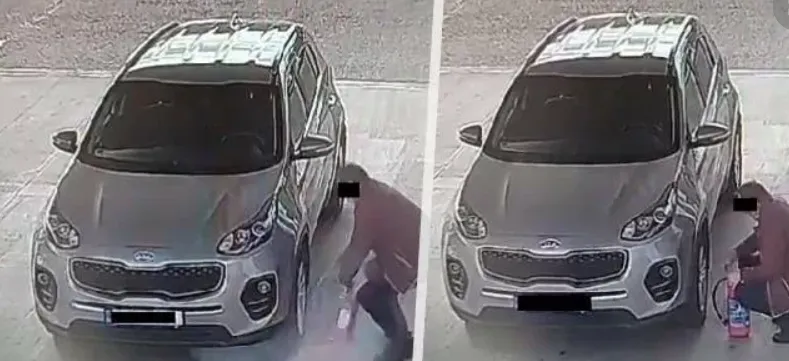 Imagini cu un șofer, virale pe internet! Bărbatul a intrat într-o benzinărie și a încercat să-și umfle anvelopa mașinii cu stingătorul de incendiu