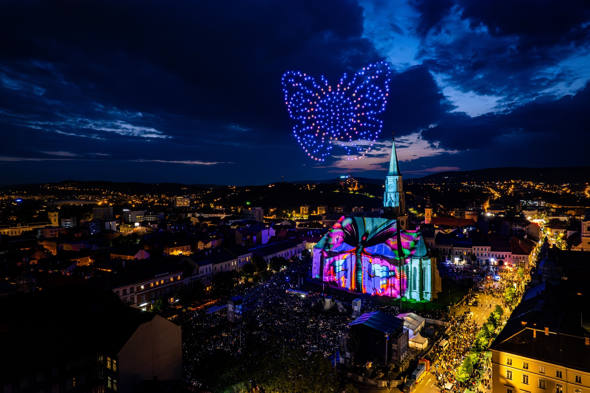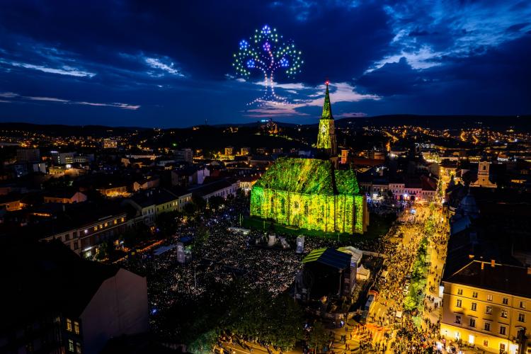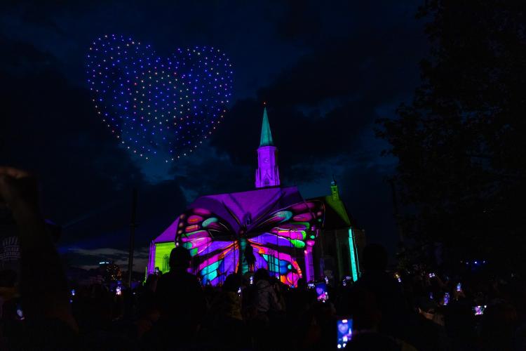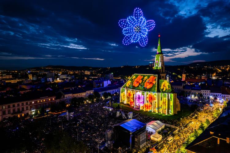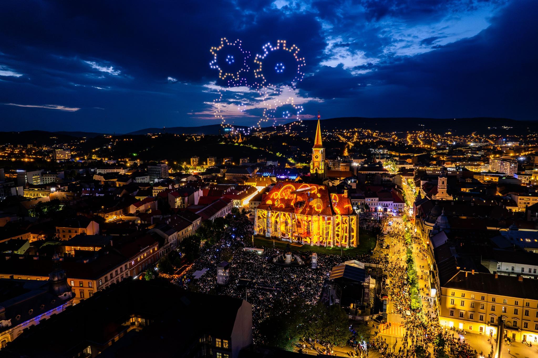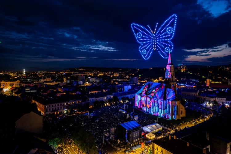 Show -ul cu drone și video mapping a fost dus la un alt nivel în acest an, la Zilele Clujului, fiind mult peste ce s-a întâmplat în 2022.