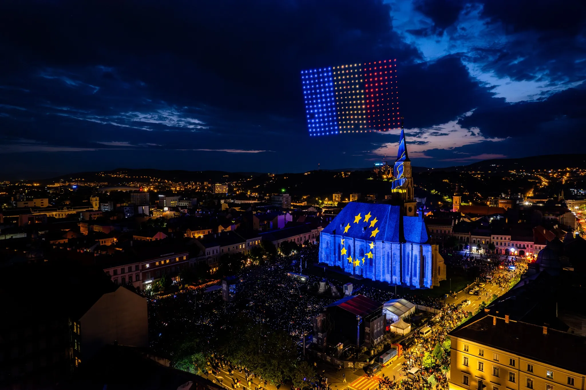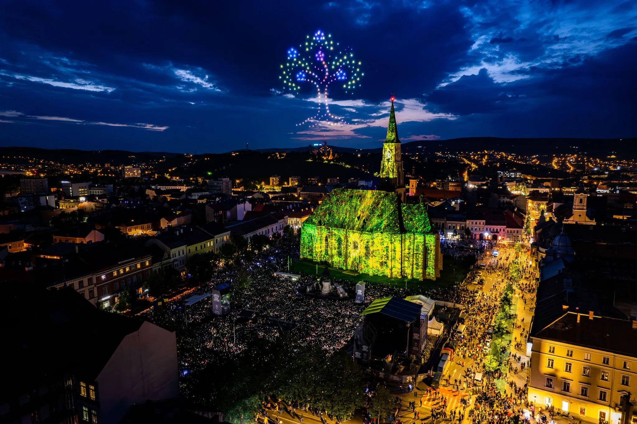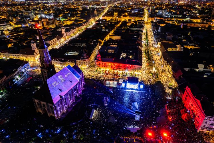 Show -ul cu drone și video mapping a fost dus la un alt nivel în acest an, la Zilele Clujului, fiind mult peste ce s-a întâmplat în 2022.