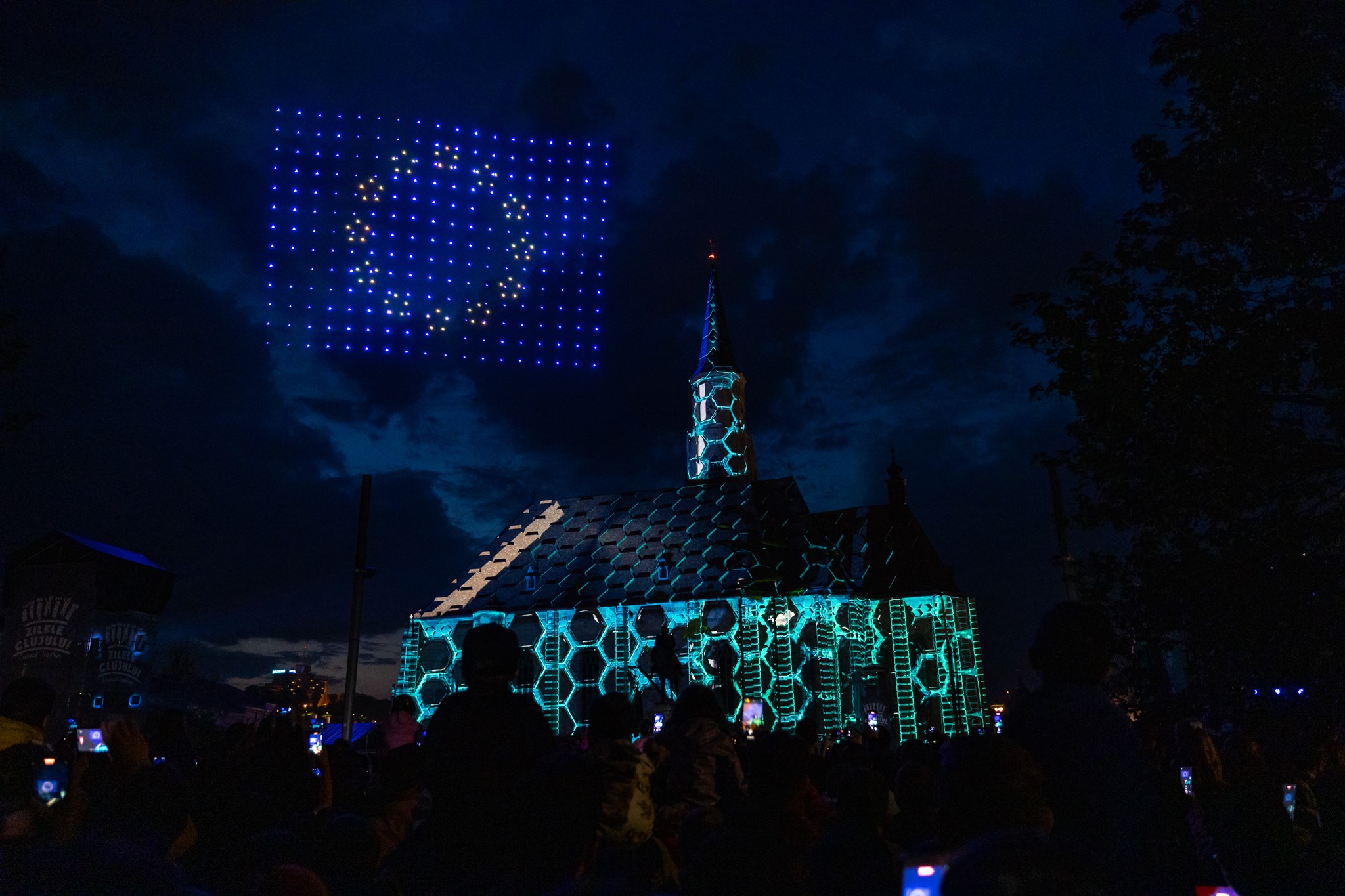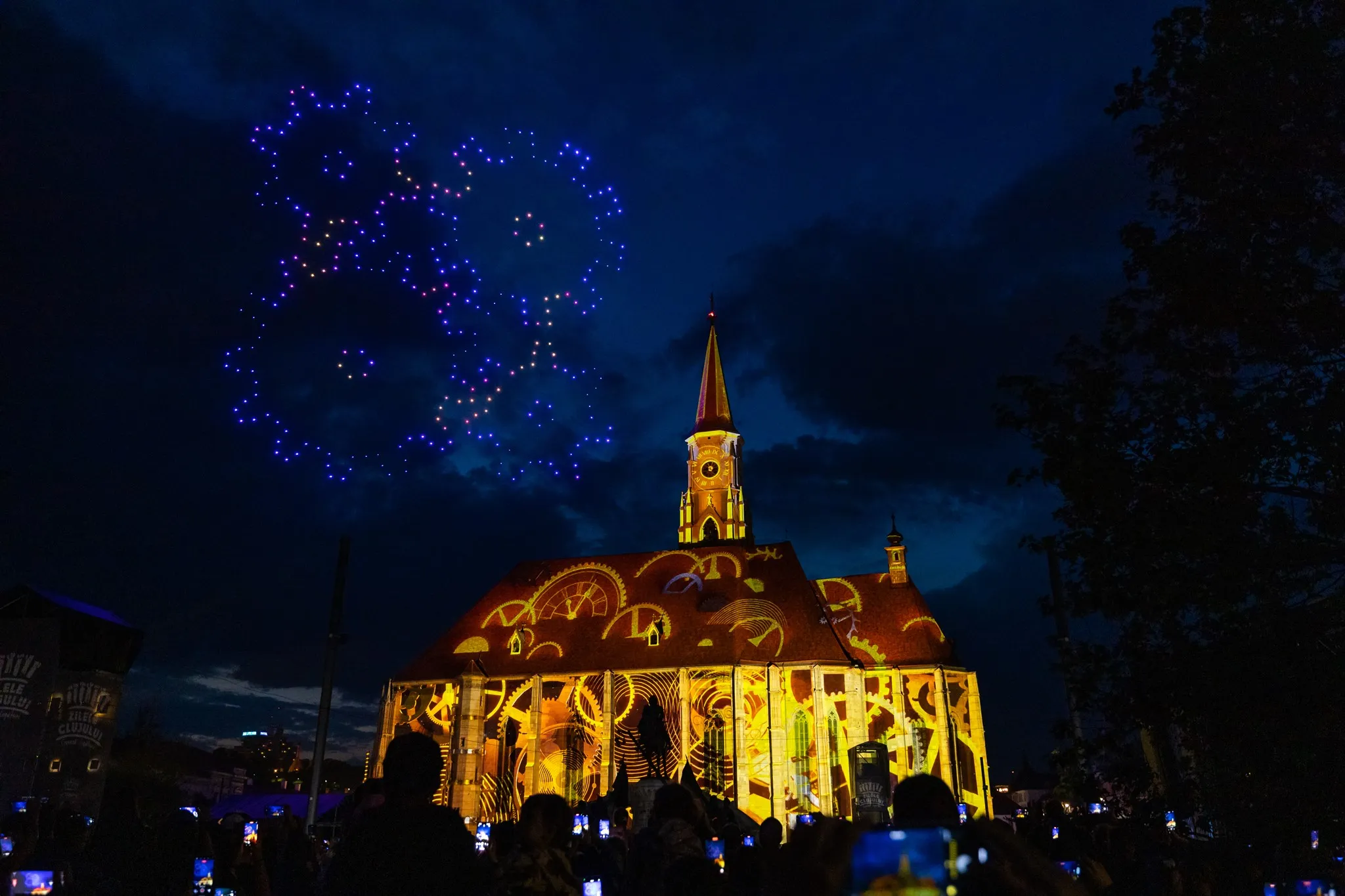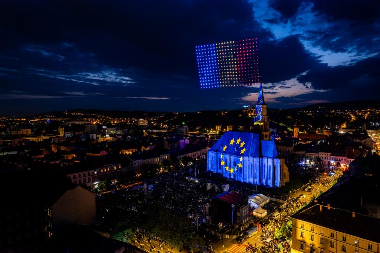 Clujul a fost ”pictat” vineri seara cu zeci de drone, iar biserica ”Sfântul Mihail” a prins viață datorită imaginilor spectaculoase.
