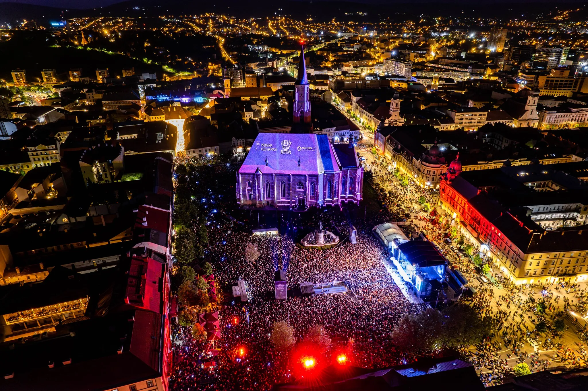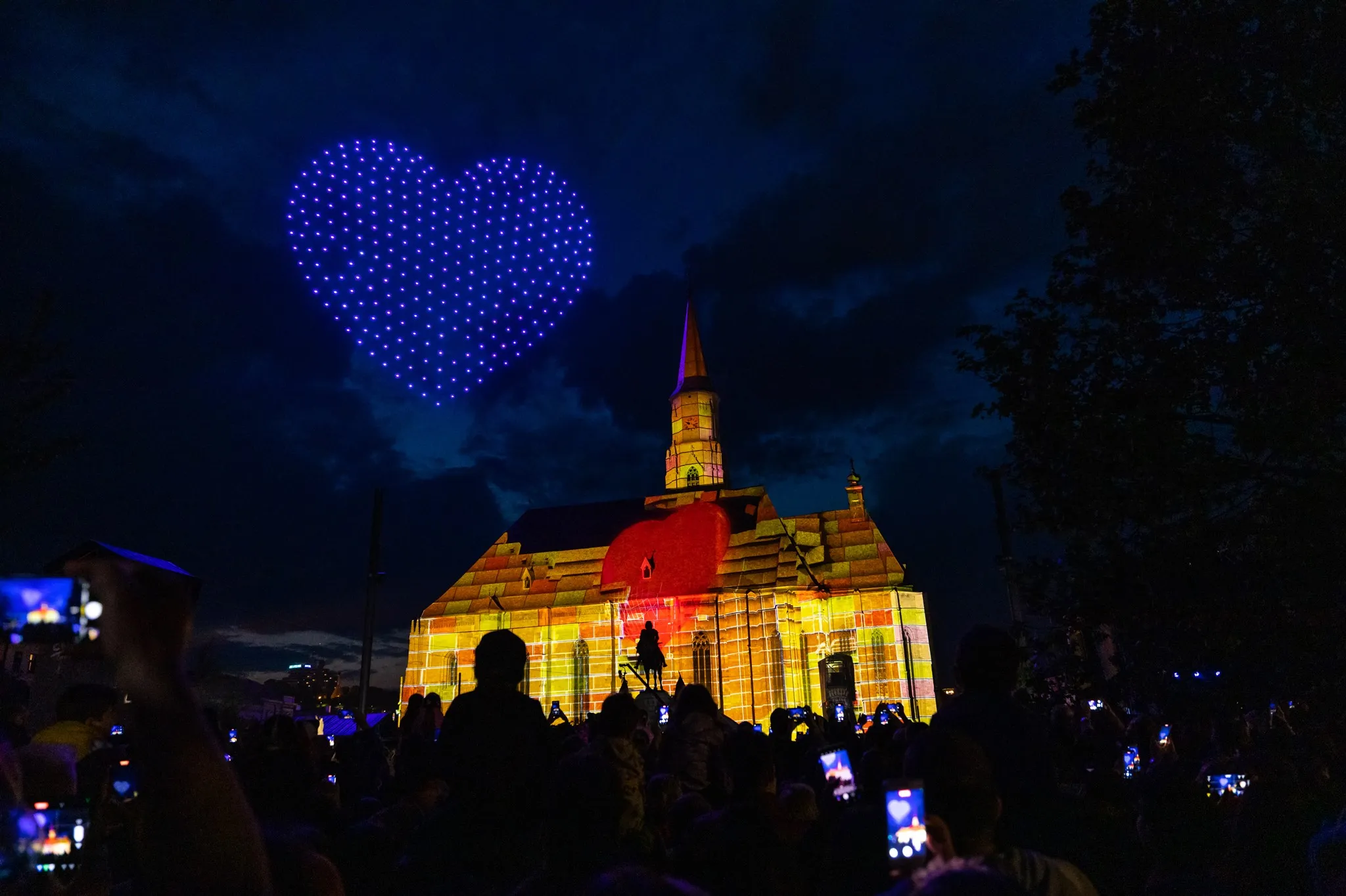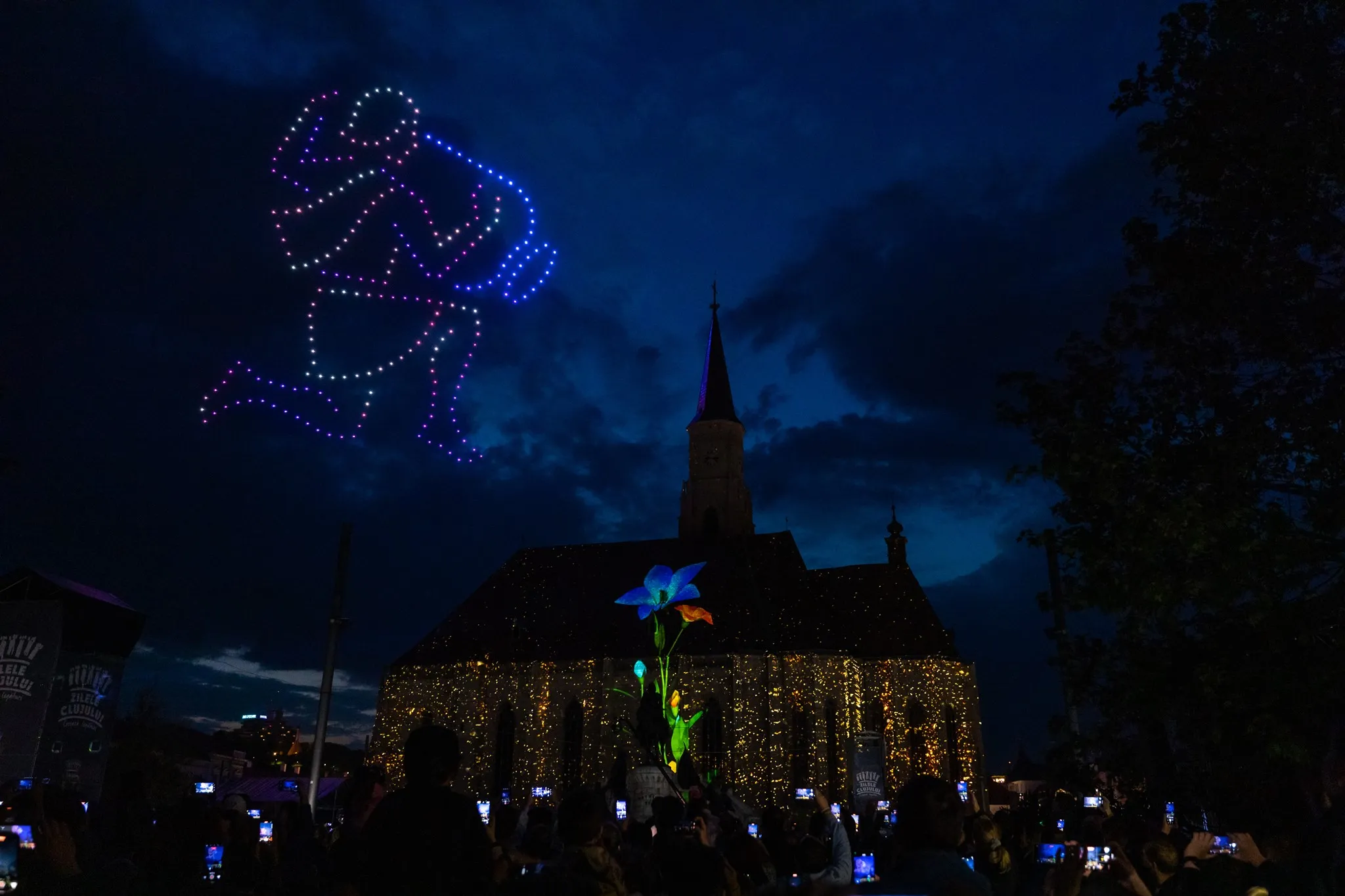Clujul a fost ”pictat” vineri seara cu zeci de drone, iar biserica ”Sfântul Mihail” a prins viață datorită imaginilor spectaculoase.