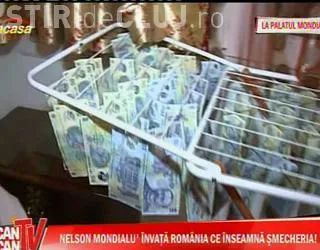 Invitat din ”apartamentul regal din Mănăștur” la emisiunea cancan TV de pe postul Acasă, Nelson Mondialu s-a lăudat cu lanțul de aur de 365 de grame, cu care suţine că a remorcat o maşină în Budapesta. ”E poveste, ştie lumea! Au zis ăia că e gol lanţul pe dinăuntru şi le-am spus că e plin şi am tractat maşina cu el. Un inel îl am de la un patron din Italia pe care l-am combinat”, a spus Nelson.