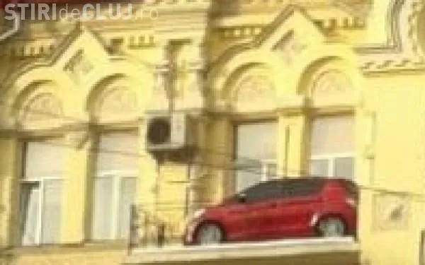 Șoferul din Kiev a reușit cumva să își parcheze mașina pe balconul unui apartament, la o înălțime de aproximativ 20 de metri.