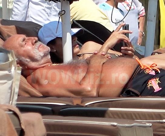 Ion Ţiriac apare în imagini stând relaxat la plajă pe şezlong, fiind însoţit de o tânără. În alte fotografii făcute pe plajă omul de afaceri apare şi alături de bodyguardul său, scriu cei de la wowbiz.ro.