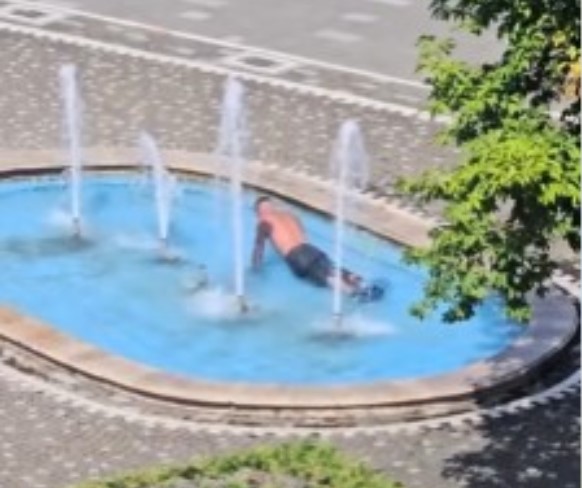 Își face pregătirile pentru Insula Iubirii! Bărbat surprins făcând flotări într-o arteziană, spre uimirea trecătorilor VIDEO
