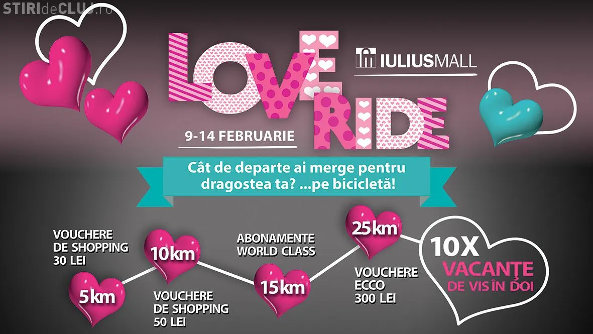 Zilnic, între orele 17.00 şi 20.00, se desfăşoară competiţia „Love Ride”. Fiecare participant va pedala timp de 30 de minute, fără întrerupere, în spaţiul special amenajat din piaţeta de la intrarea principală în Iulius Mall, iar clienţii curajoşi vor fi premiaţi pentru sentimentele lor, în funcţie de numărul kilometrilor pedalaţi. Cei care parcurg 5 km vor primi vouchere de cumpărături în valoare de 30 de lei, pentru 10 km răsplata este un voucher de cumpărături în valoare de 50 lei, cei care rezistă 15 km vor câştiga un abonament pentru o lună la World Class, în timp ce îndrăgostiţii care rămân pe bicicletă mai mult de 25 km vor fi premiaţi cu vouchere ECCO în valoare de 300 lei.