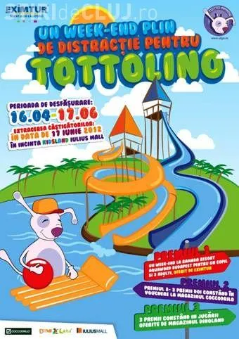 De asemenea, prichindeii care se aniverseaza, pana pe 16 iunie 2012, la KidsLand, participa la o super tombola! Tottolino ii trimite in vacanta cu parintii la Budapesta sau le ofera hainute si multe jucarii. Pe 17 iunie, se extrag taloanele depuse in urna, rasplatite cu mari premii.