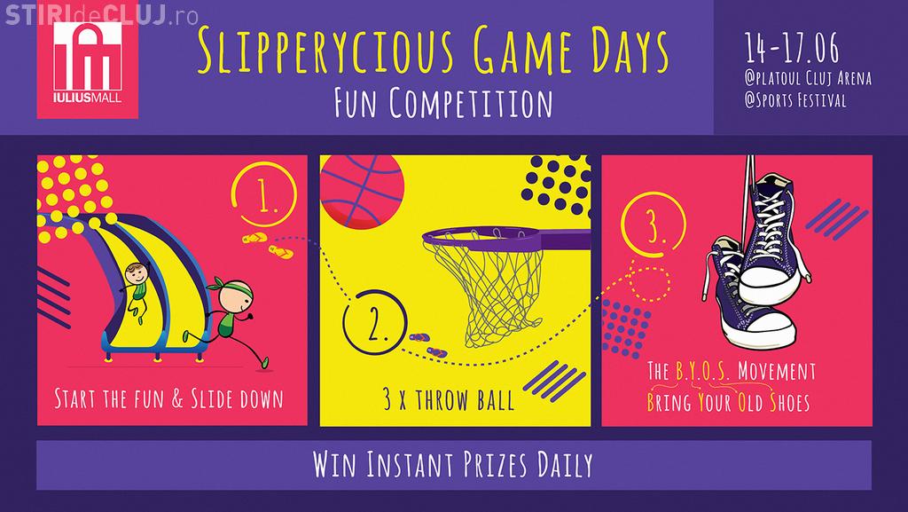 Vino să iei startul distracției alături de Iulius Mall, la „Slipperycious Game Days”, de joi până duminică, pe platoul Cluj Arena!