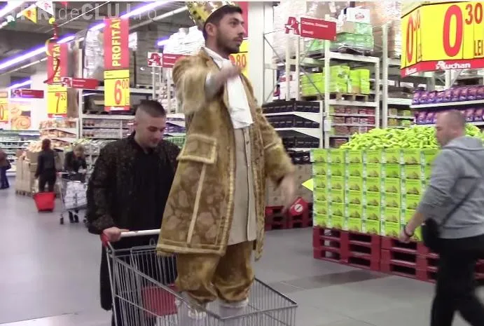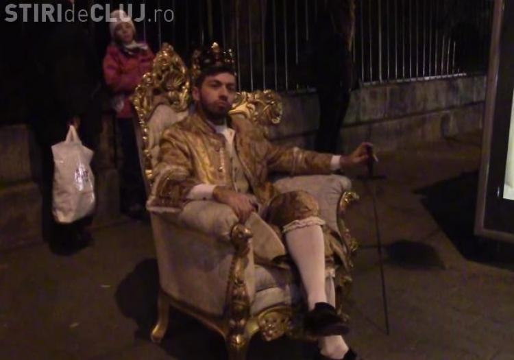 ”Regele Bravo” a împărțit banuți clujenilor, a defilat prin mall sau și-a pus tronul regal într-un autobuz unde s-a așezat între ”muritorii de rând”.