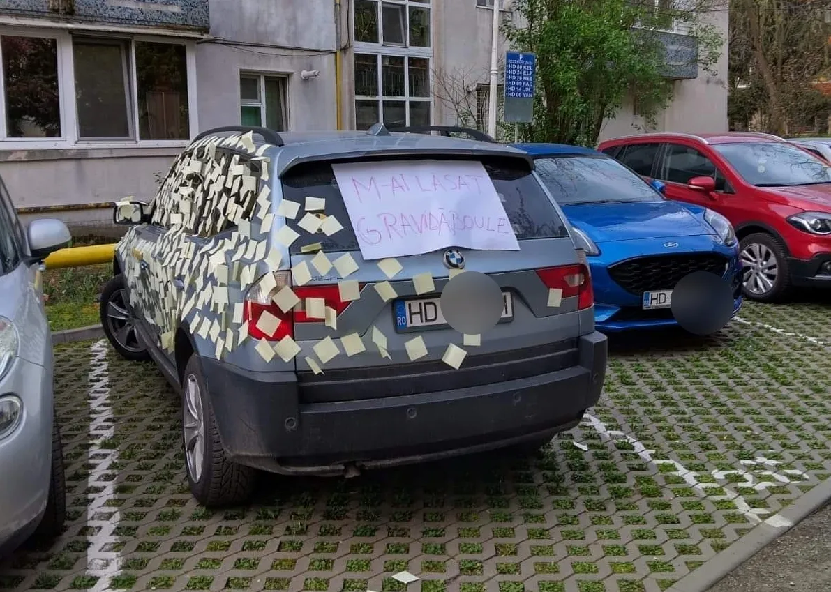 Un ardelean s-a trezit pe mașină cu un mesaj care aproape i-a distrus casa! ”M-ai lăsat gravidă, boule!”, scria pe un banner lipit pe mașină.