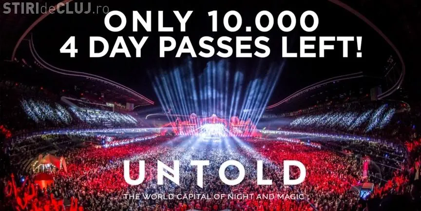 Cu toate că mai sunt două luni până la festivalul UNTOLD, organizatorii anunță că mai sunt disponibile doar 10.000 de abonamente la cea mai intensă experiență muzicală a anului. Fanii festivalului UNTOLD care vor să trăiască experiența unică și plină de magie a festivalului, mai au la dispoziție doar 10.000 de abonamente pentru ediția din acest an. După epuizarea ultimelor 10.000 de abonamente, festivalul UNTOLD, ediția 2017 va fi declarat sold out. Cei care vor dori să facă parte din povestea UNTOLD vor mai avea la dispoziție doar bilete de 1 zi.