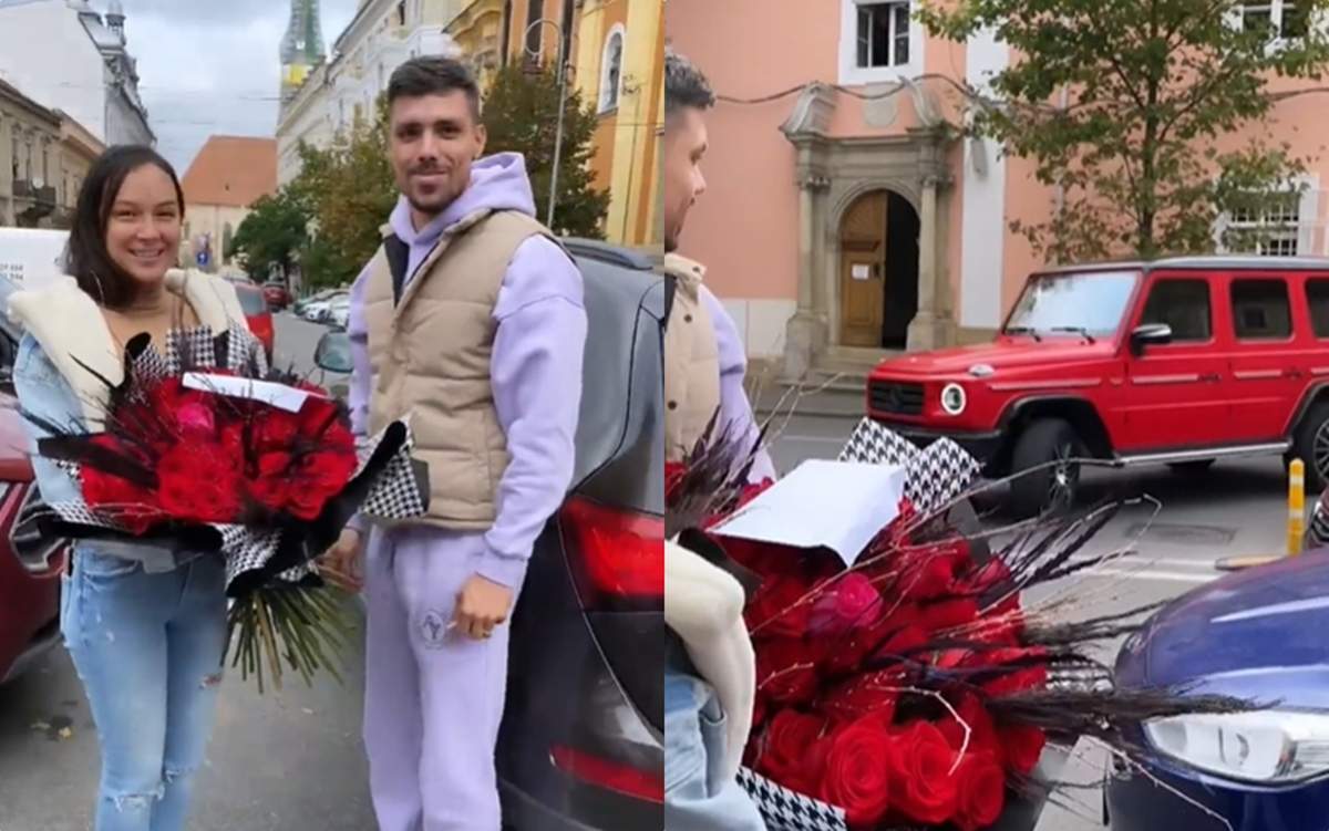 Artista a fost chemată într-o parcare din Cluj-Napoca, iar soțul ei a venit cu un buchet imens de trandafiri roșii, a îmbrățișat-o și i-a arătat mașina.