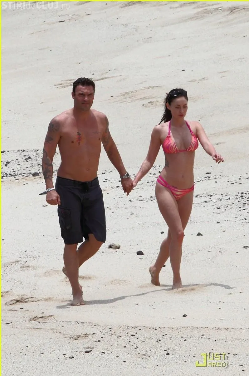 Actrita Megan Fox a fost surprinsa de fotografi pe plaja imbracata intr-un costum de baie roz. Privirile au fost atrase ca un magnet de formele vedetei.