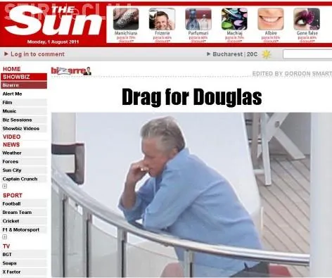 Actorul Michael Douglas, care s-a vindecat de cancer la gat in urma cu cateva luni, a fost fofografiat de paparazzi in timp ce fuma pe ascuns.