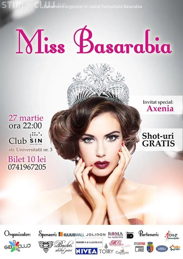 Cocursul de frumusețe ”Miss Basarabia” se va desfășura în Club SIN, pe str. Universității, nr.3.