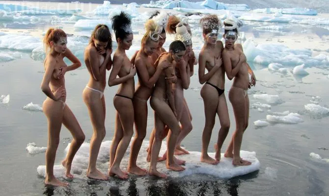 Designerul le-a pus pe frumoasele din concursul "Next Top Model by Catalin Botezatu" sa pozeze pe un ghetar la -5 grade Celsius din Islanda.