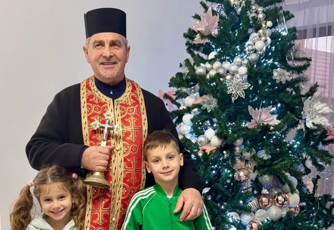Georgiana și copiii au așteptat preotul să le sfințească casa, conform tradiției, după Anul Nou. Mare le-a fost bucuria când au văzut că preotul care venit să-i binecuvânteze era chiar socrul Georgianei, părintele Vasile Ciciovan.