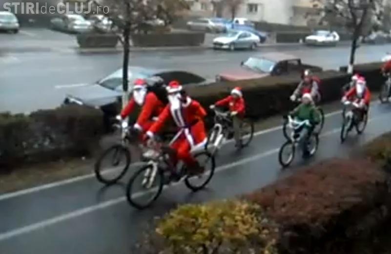 Mos Craciun a pedalat duminica, 4 decembrie, prin Cluj-Napoca, impreuna cu ajutoarele lui. Clujenii au fost placut impresionati, cand au vazut grupul de "mosi" traversand orasul.